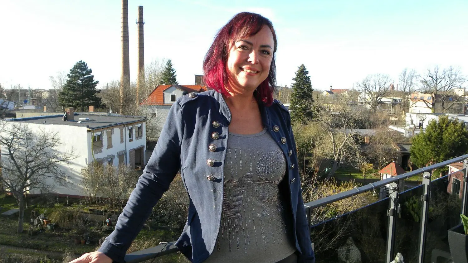 Mandy Sprejz, Kandidatin der Sendung First Dates Hotel auf Vox, auf ihrem Balkon in Cottbus.