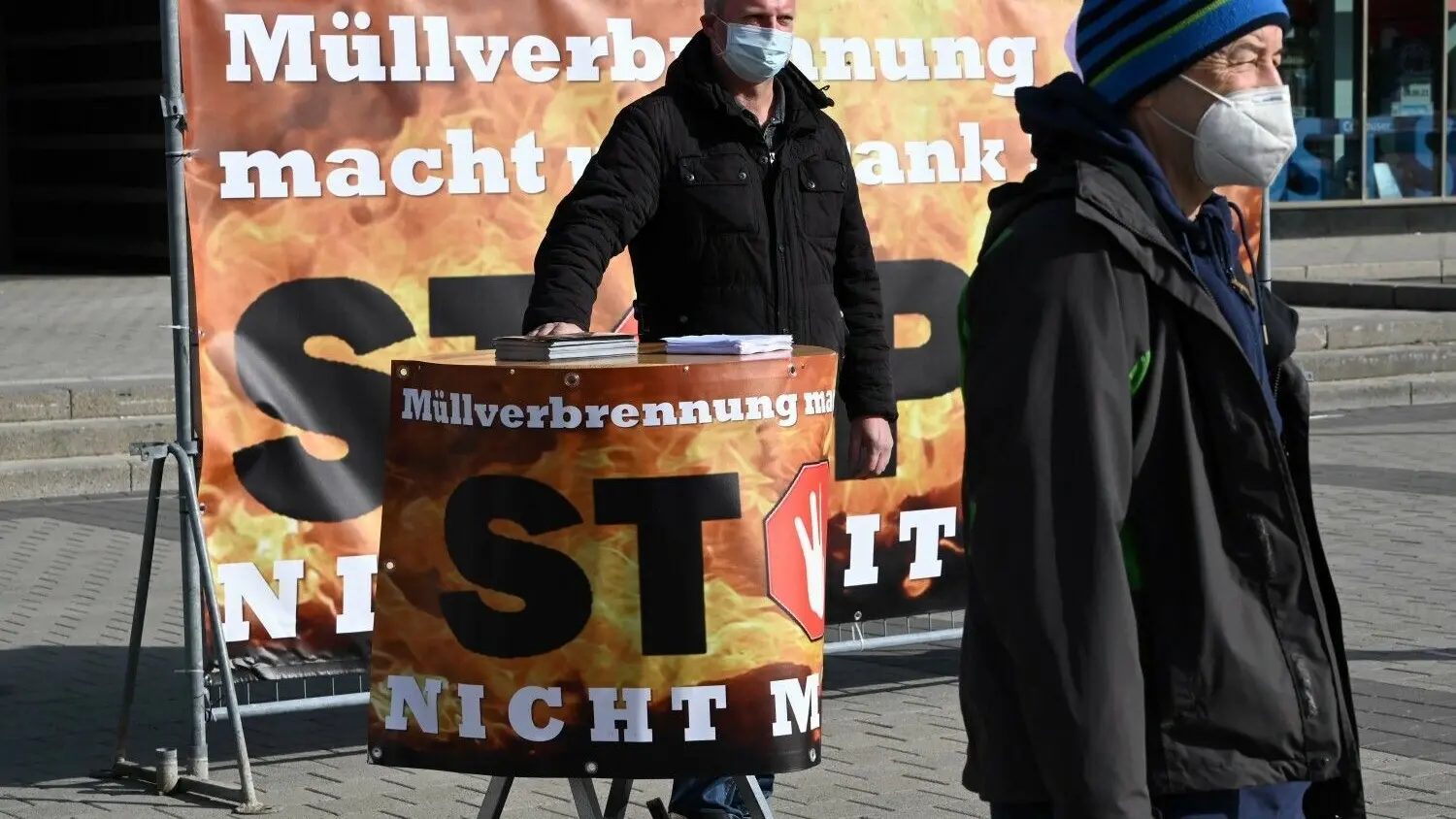 Mitglieder des Aktionsbündnisses gegen die Müllverbrennungsanlage in Jänschwalde hatten bereits im Vorfeld protestiert, wie hier vor der Cottbuser Stadthalle. Nun wollen die Gegner des Projektes juristische gegen die Genehmigung vorgehen.