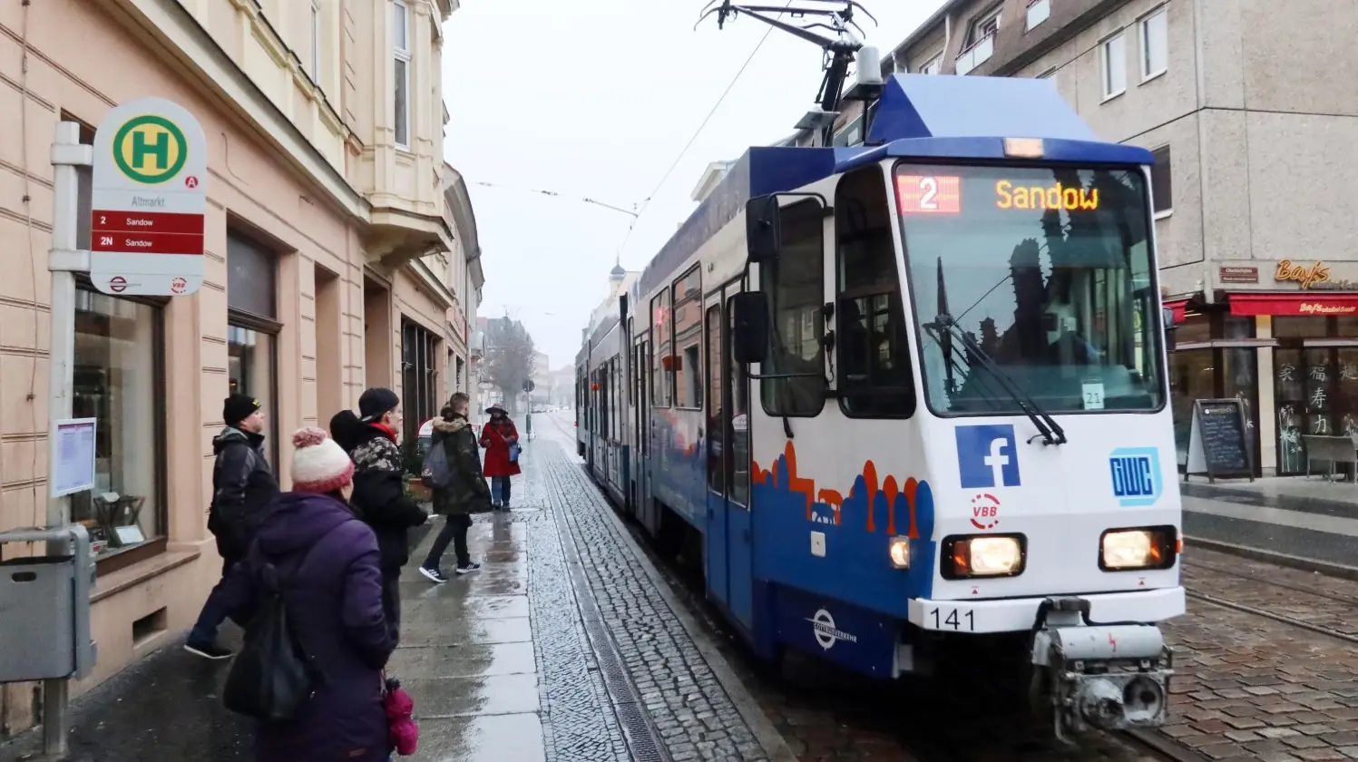 Archivfoto – Die Straßenbahnhaltestelle Sandower Strasse/Oberkirchplatz. Wegen eines Unfalls im Bereich der Sandower Brücke kommt es am Samstag, 11. Juli, zu Veränderungen im Betrieb der Linie 2.