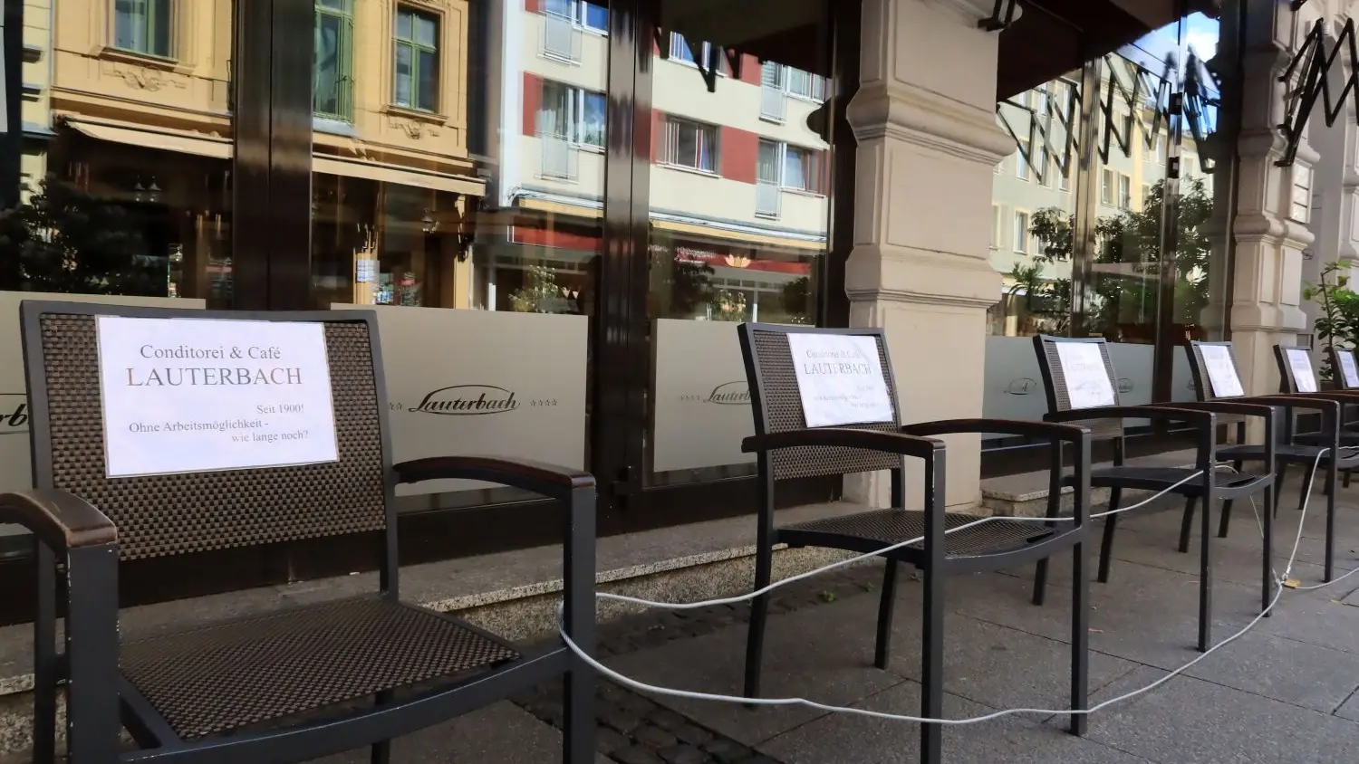 Warten auf die Wiederöffnung. Auch viele Cottbuser Gastronomen und Hoteliers haben mit leeren Stühlen auf dem Altmarkt auf ihre katastrophale Lage in der Coronakrise aufmerksam gemacht. Die Zwangsschließungen setzen die Inhaber von Cafés und Restaurants auch wirtschaftlich unter extremen Druck. Die Stunde der Wahrheit schlägt.