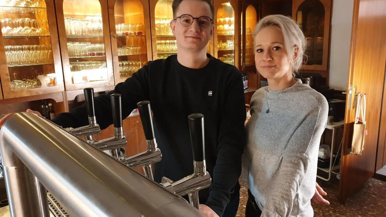 Ziehen bald zum letzten Mal am Zapfhahn in der Gaststätte „Zur Erholung“ in Finsterwalde: Marc und seine Schwester Nadine Umlauf.