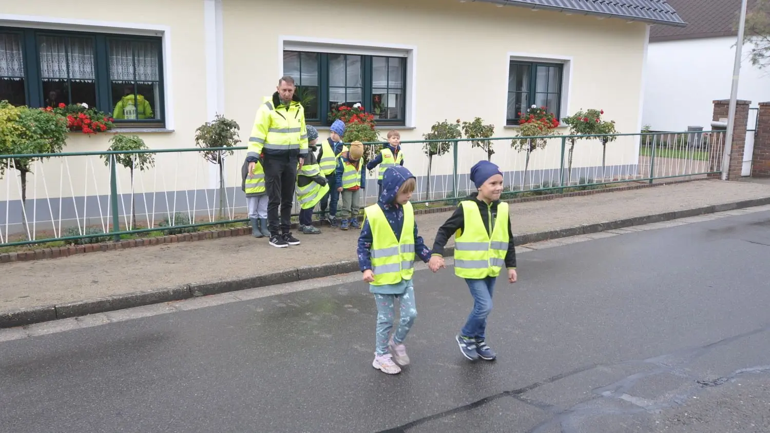 Wie überquere ich eine Straße richtig? Auch das lernen Kinder, hier der Kneipp-Kita in Zeischa, im Verkehrserziehungsprojekt für Vorschulkinder der Kreisverkehrswacht.
