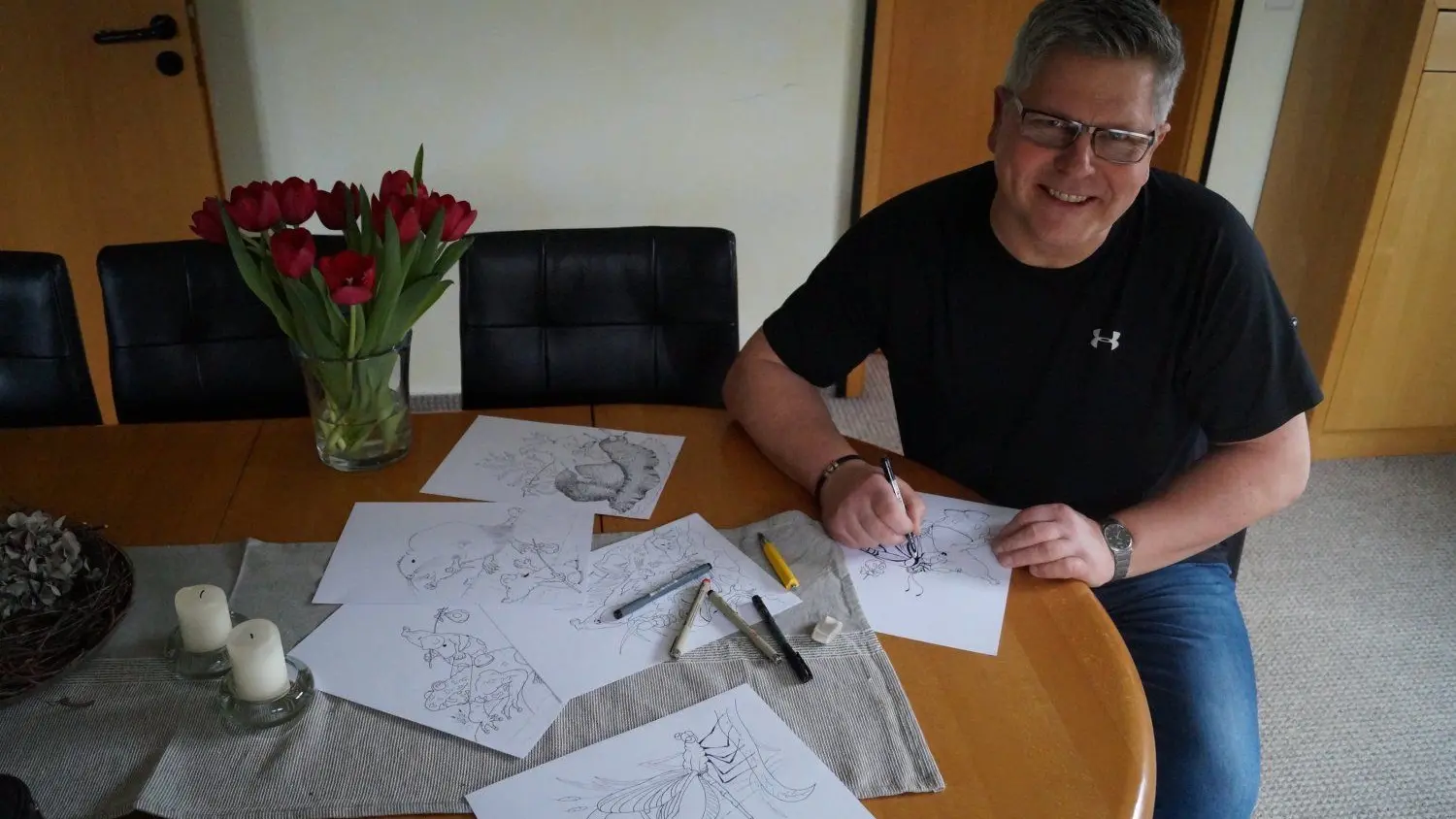 Der Cartoonist und Autor Gerd Paegert aus Freesdorf arbeitet derzeit an seinem ersten Kinderbuch. Darin greift er mit niedlichen Kurzgeschichten und Cartoons die heimische Tier- und Pflanzenwelt auf.