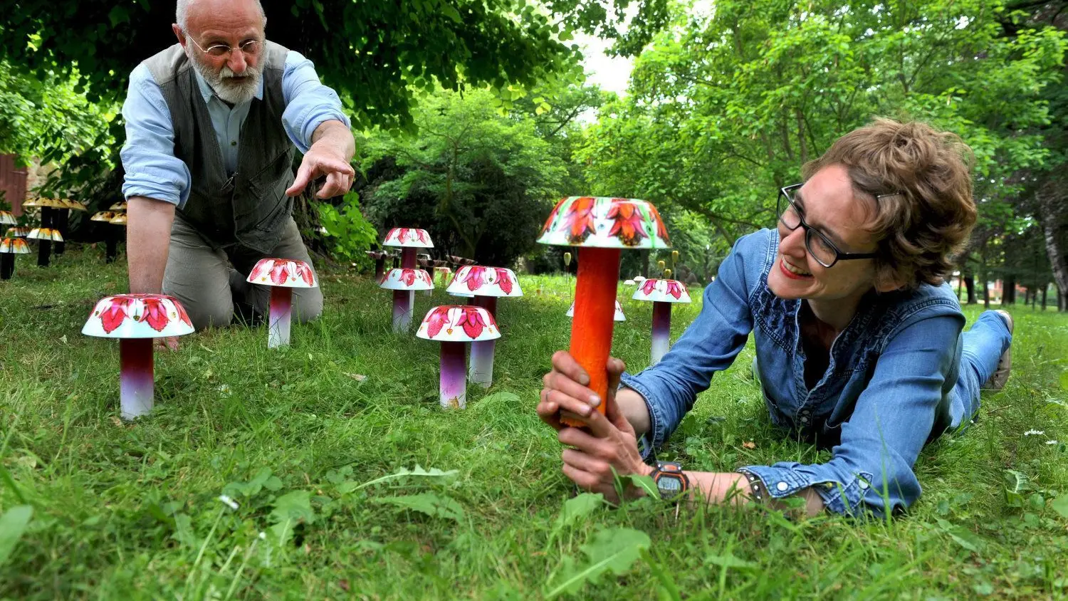 Rückblick: Kunst unter freiem Himmel ist schon bei der Spektrale 8 in Luckau gut angekommen. Sabine Fassl aus Berlin, hier im Gespräch mit Kurator Herbert Schirmer, hatte am Napoleonhäuschen ihre Installation aufgebaut.