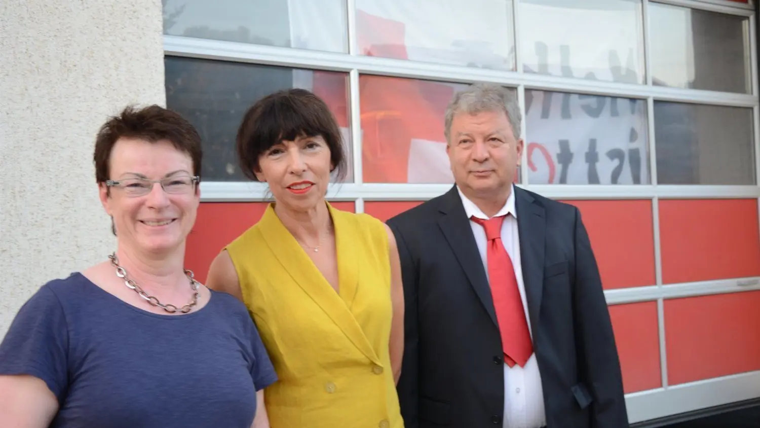 Die neue Führungsspitze des DRK-Kreisverbandes Calau und die ehemalige Präsidentin Roswitha Schier (li.) vor der Rettungswache in Calau. Heike Lappan (Mitte) ist nunmehr Geschäftsführerin, Frank Schöne Präsident.