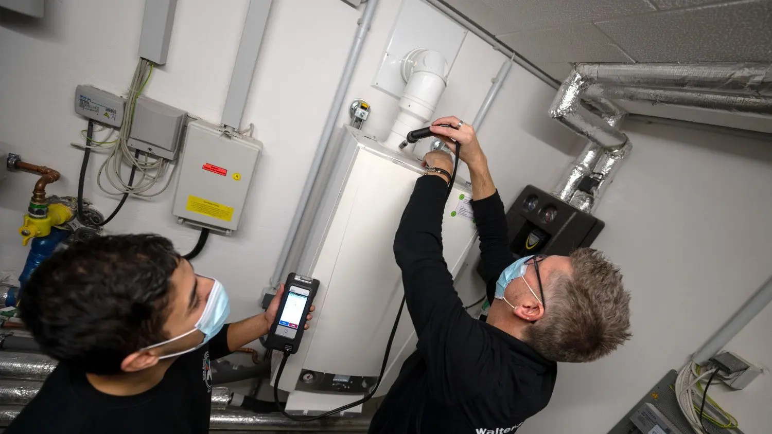 Ein Schornsteinfeger demonstriert eine Luftmessung an einem Heizkessel. Energieeinsparpotentiale finden sich vor allem an Heizungsanlagen. Vetschau will diese Potentiale selber unter die Lupe nehmen und verzichtet auf externe Berater und eine Teilnahme an einem kommunalen Energieeffizienz-Netzwerk.