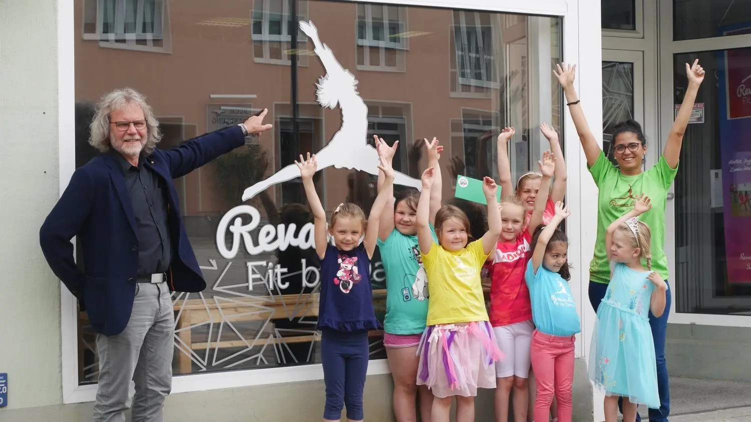 Unter dem Slogan „Echt Calau“ hat Bürgermeister Werner Suchner einen Gutschein an die Kinder Zumba-Tanzgruppe des Tanzstudios „Fitbydance“ überheben.