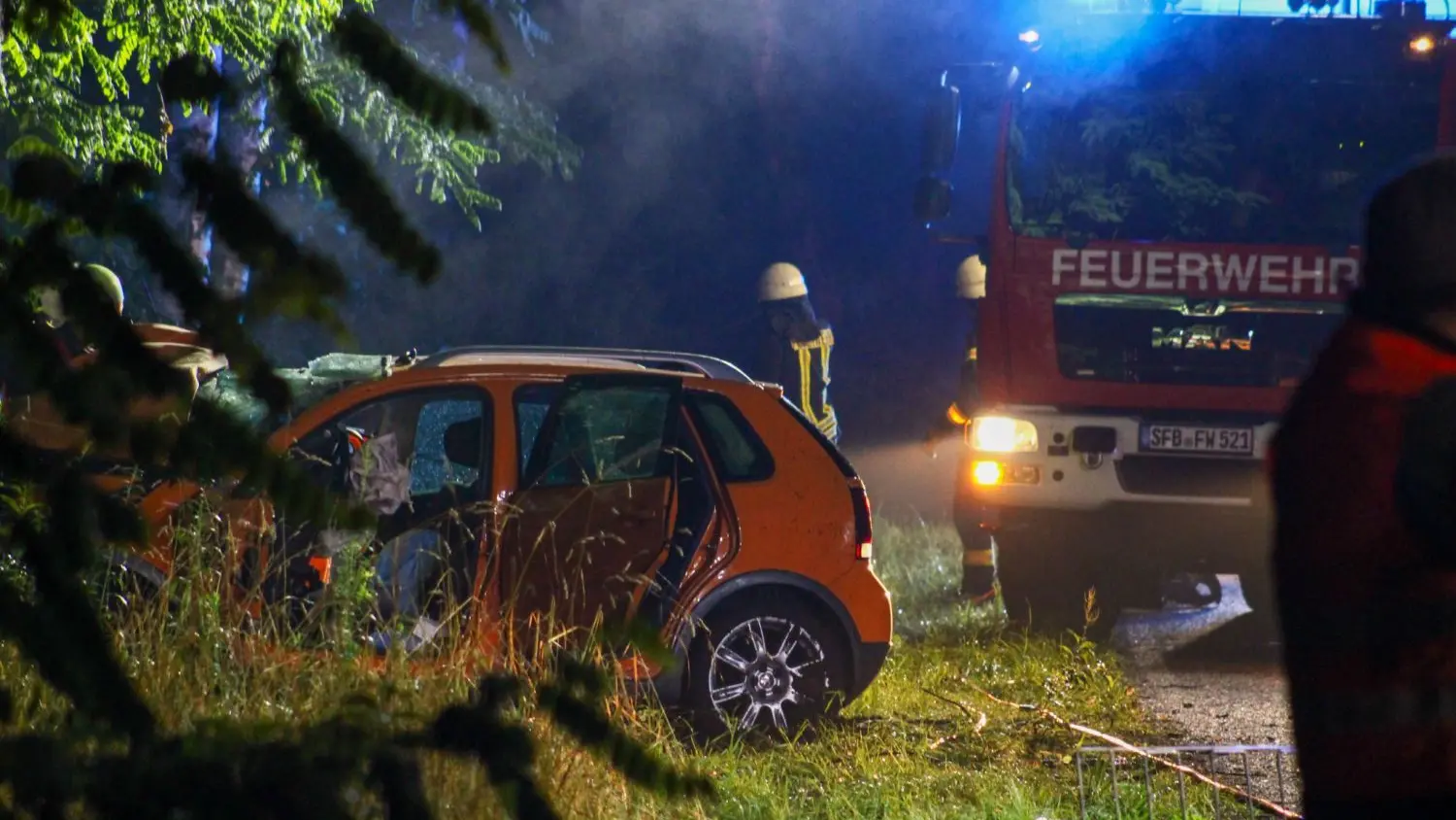 Die 25-jährige Frau war mit ihrem Pkw gegen 21.30 Uhr auf der Ortsverbindungsstraße zwischen Peickwitz und Niemtsch unterwegs, als das Fahrzeug aus noch ungeklärter Ursachen plötzlich nach rechts von der Fahrbahn abkam und gegen einen Baum prallte. Durch die Wucht des Aufpralls wurde die Fahrerin in ihrem Pkw eingeklemmt.